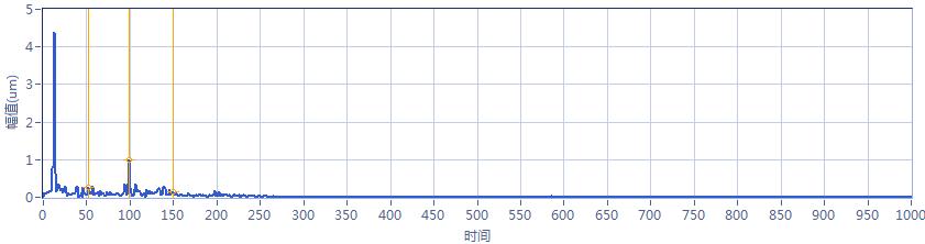 根據(jù)旋轉(zhuǎn)機械振動診斷國際標準ISO-10816振動烈度小于2.8mm/s 位移小于28μm振動均在良好限值以下,故此泵整機狀態(tài)良好。
